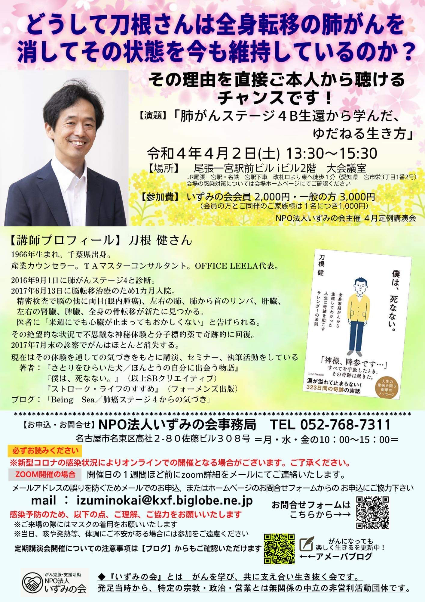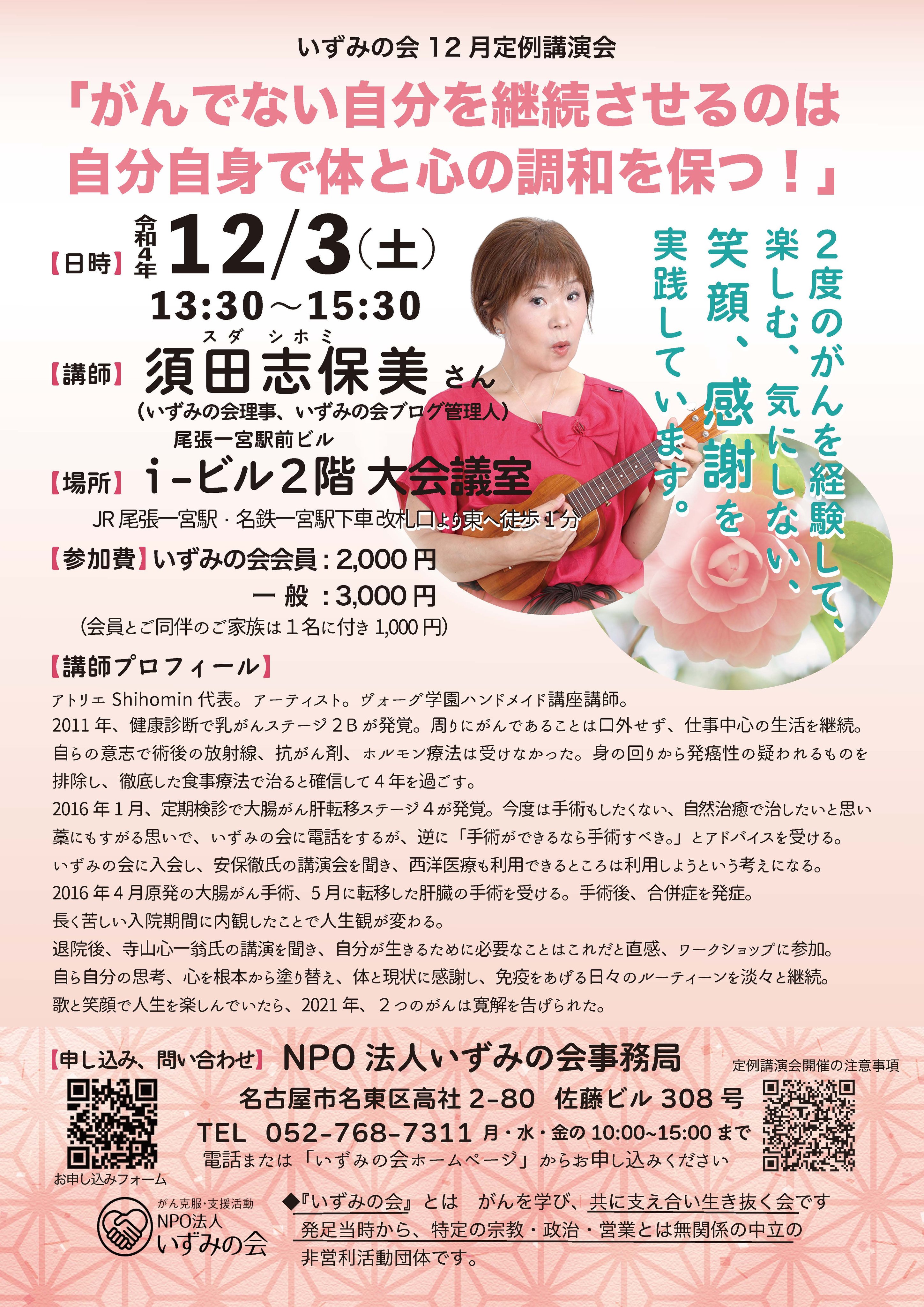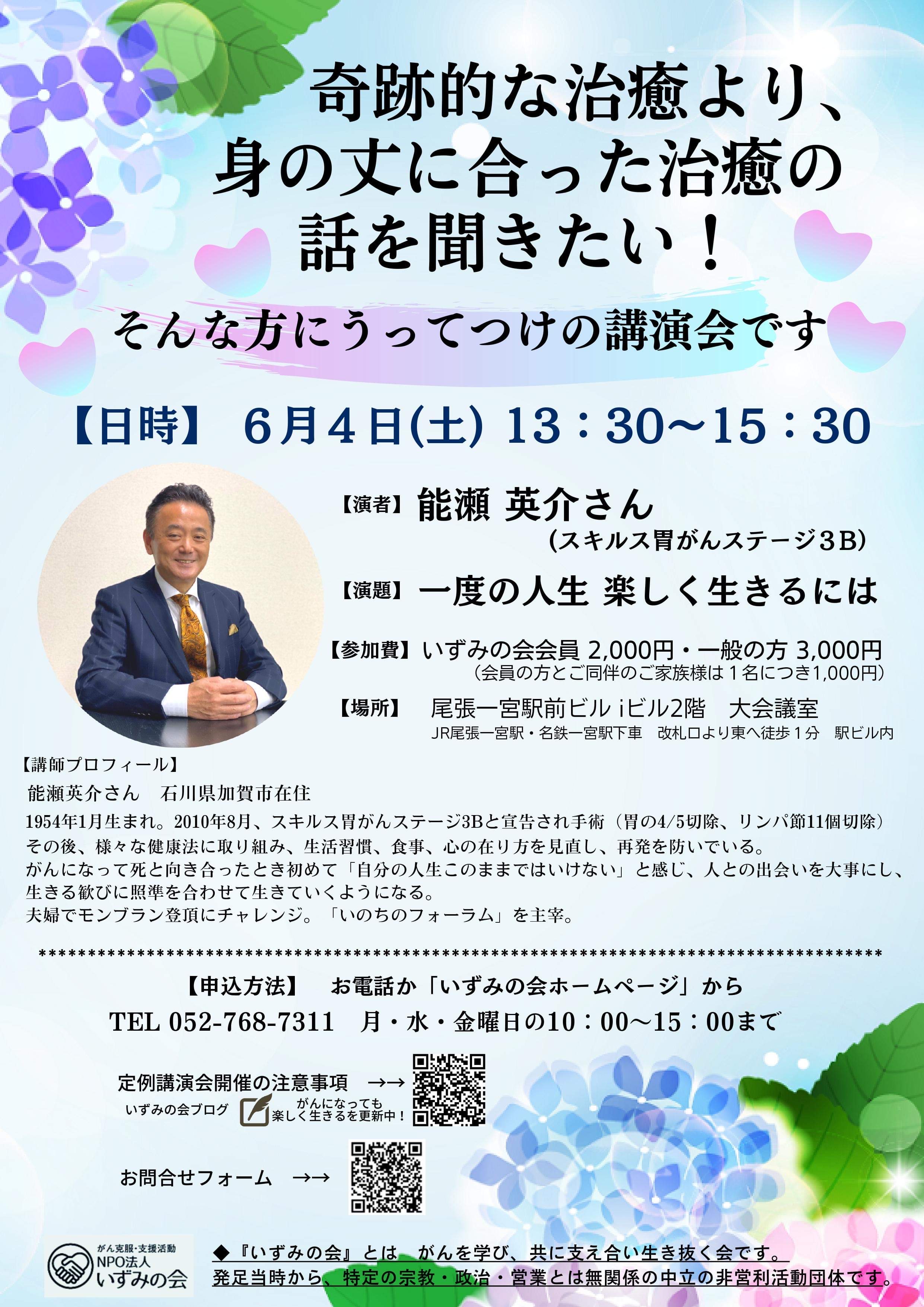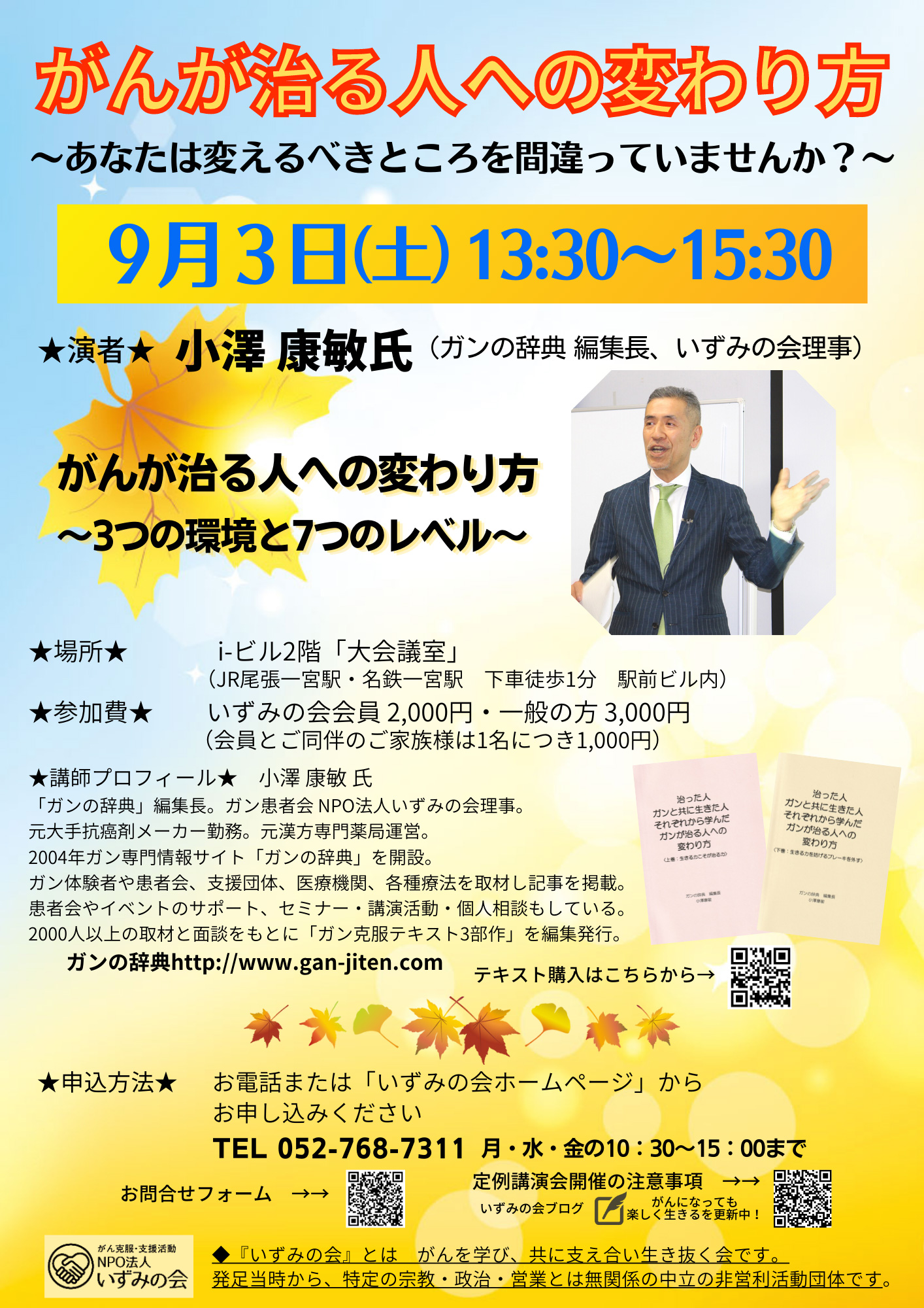 いずみの会理事 小澤まで gan-jiten@ymail.ne.jp 052-753-6533(火・木 10~15時) |