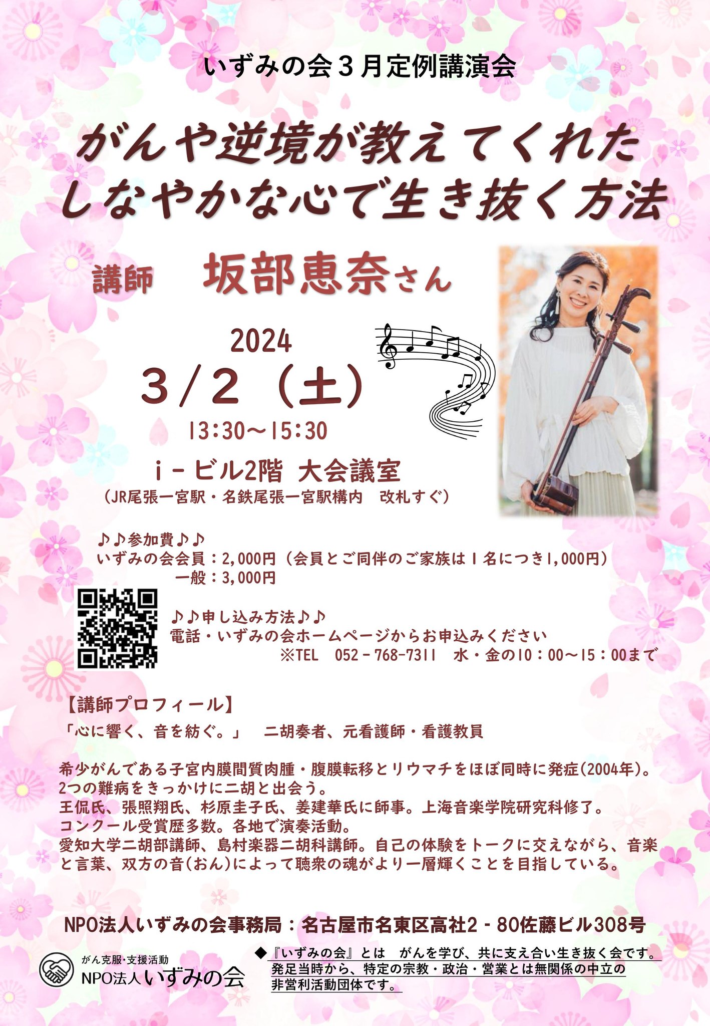 - ❶ 入会金は不要。年間3,000円(税込)の会費で各種セミナーやがん体験談&交流会など、いずみの会イベントに会員価格でご参加いただけます。
