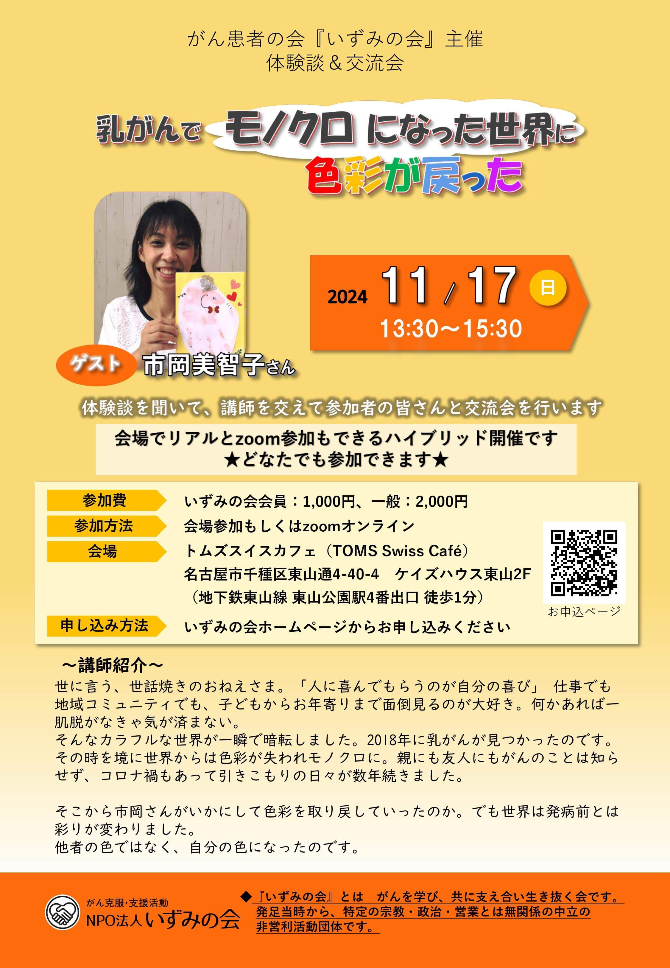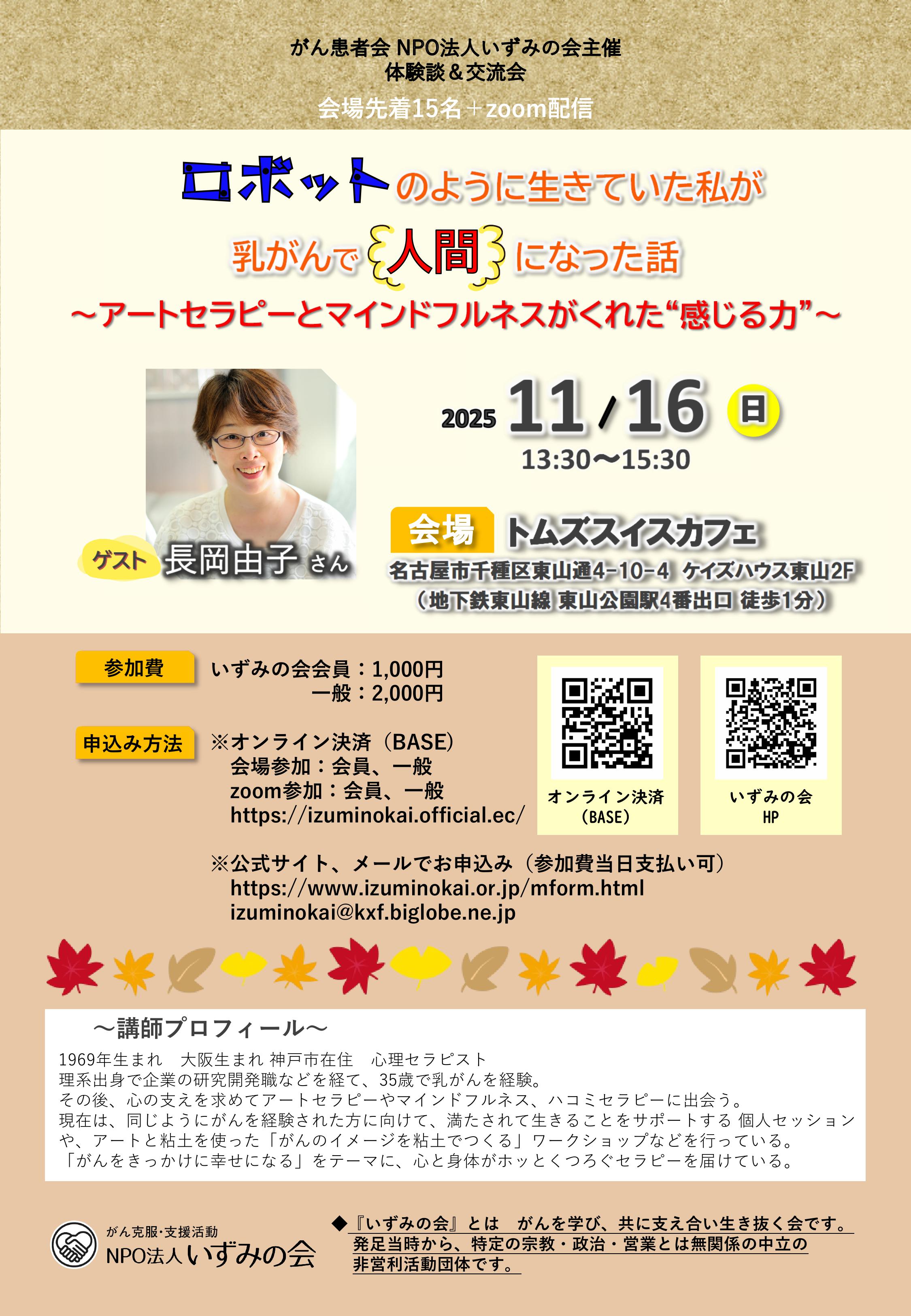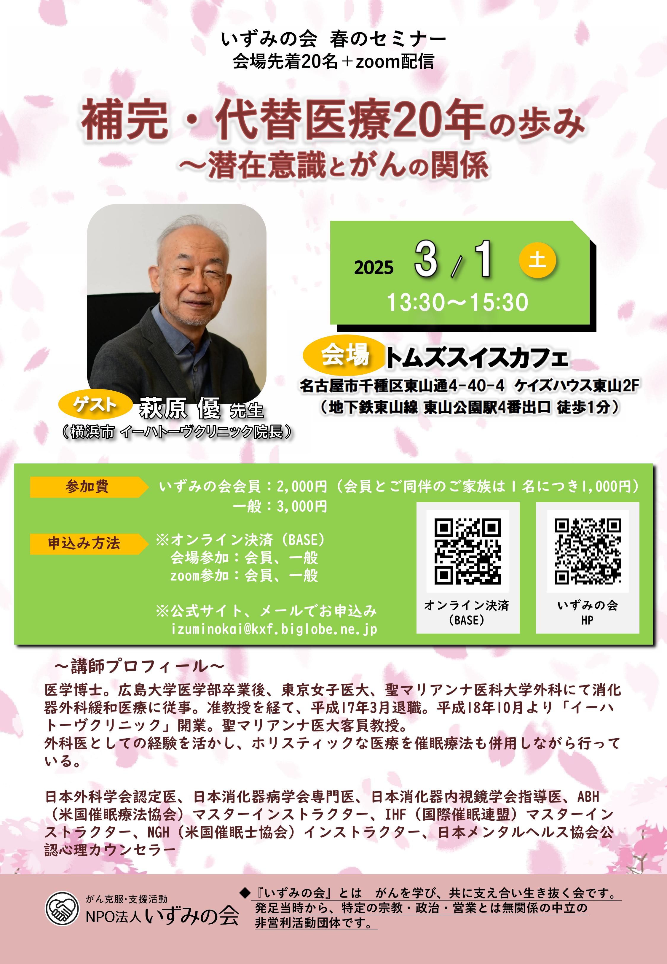| 会場 | いずみの会レンタルスペース 地下鉄東山線東山公園駅4番出口徒歩1分 《MAPはこちら》 |